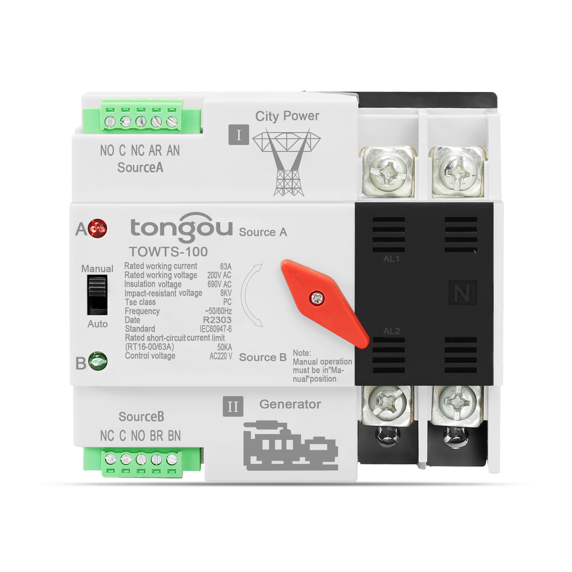 ATS Einfache Verkabelung, selbst installieren:35mm Standard Schiene Installation kann direkt auf der Haushaltsbeleuchtungsverteilungsbox montiert werden. Wenn die Energie über L und N eingegeben wird, bitte festziehen, um die Isolationsschicht der Stromleitungen durchzudrehen.