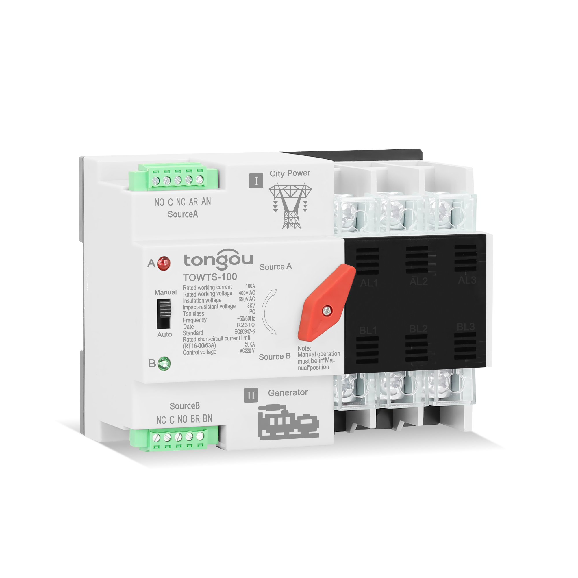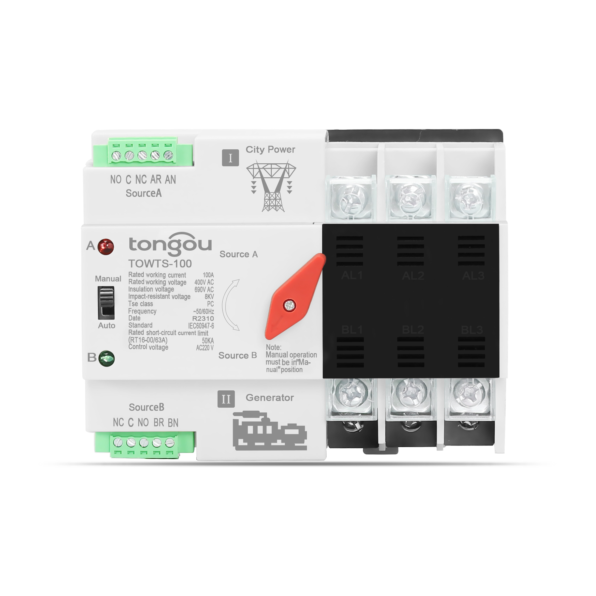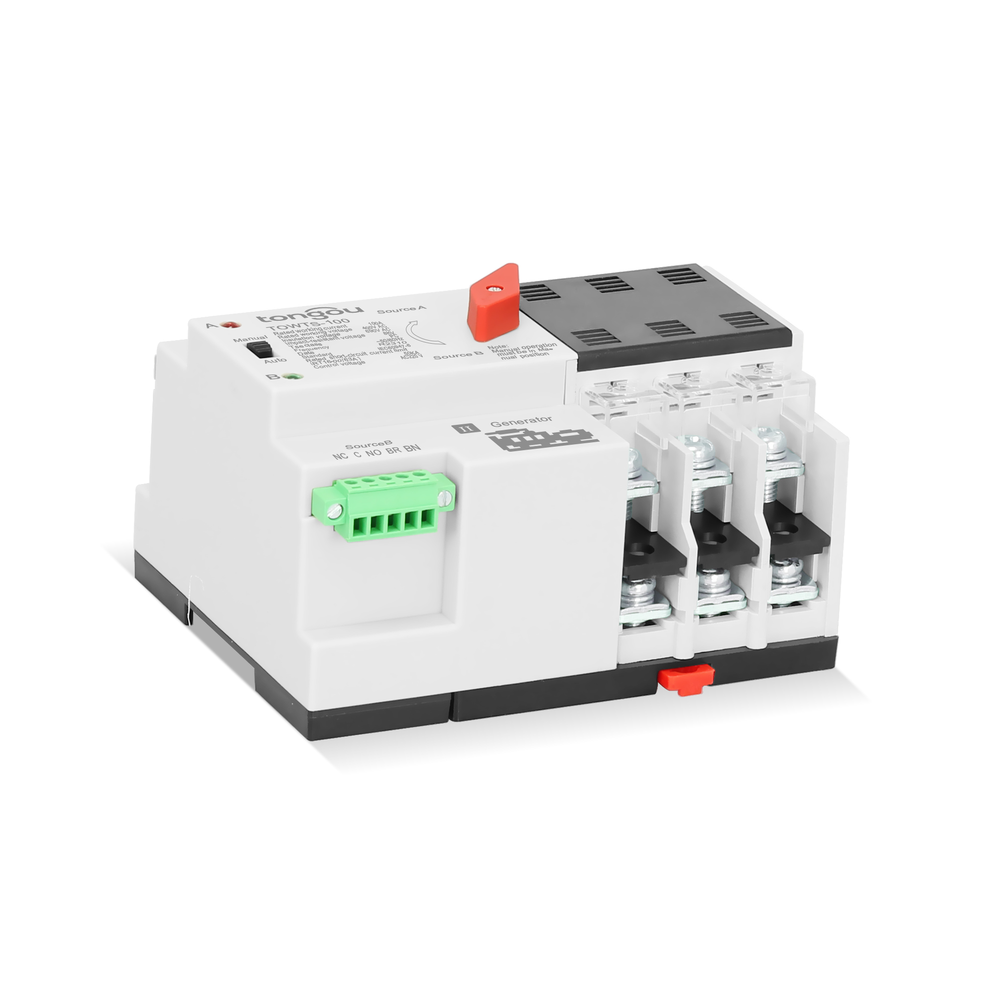 ATS Einfache Verkabelung, selbst installieren:35mm Standard Schiene Installation kann direkt auf der Haushaltsbeleuchtungsverteilungsbox montiert werden. Wenn die Energie über L und N eingegeben wird, bitte festziehen, um die Isolationsschicht der Stromkabel zu durchdrehen.