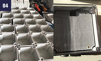 La caja de unión waterproof puede estar equipada con una placa inferior para colocar el equipo de monitoreo del cliente, y la placa se fija con tornillos.
