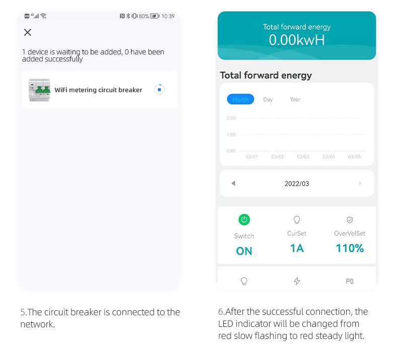 Indicator description of TOQCB1-TJ-100 tuya wifi circuit breaker with metering