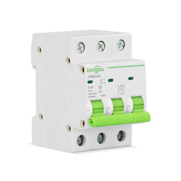 El Interruptor de Corte CA 3P 16A MCB TOMC3-63 se utiliza principalmente para proteger contra sobrecarga y cortocircuitos bajo 50/60Hz, tensión nominal 110/220V y corriente nominal de 1A a 63A.