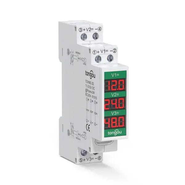 Voltímetro de rieles DIN: Montaje en rieles DIN de 35 mm, 1 posición en el gabinete de distribución. Plan de cableado más fácil.