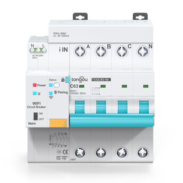 Interruptor de Circuito Inteligente RCBO con temporizador WiFi TUYA Control Remoto – TOQCB2L 4P