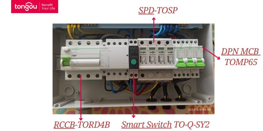 Condividendo un’applicazione reale dell’RCCB di Tongou, il nostro cliente utilizza la nostra linea di prodotti corrispondente nella sua scatola di distribuzione domestica per proteggere la sicurezza elettrica della sua famiglia.
