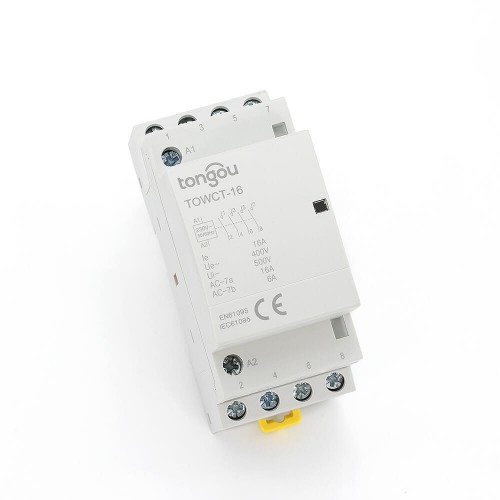 La série TOWCT de contacteurs modulaires AC ménagers est adaptée pour utilisation dans les circuits jusqu’à la tension nominale de 400V CA 50/60Hz avec un courant nominal jusqu’à 63A.