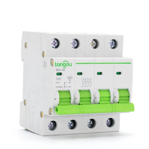 Le MCB AC 4P 63A MCB TOMC3-63 a une apparence élégante ; la couverture bombée et les poignées rendent l’opération confortable avec une fenêtre d’indication de la position des contacts.