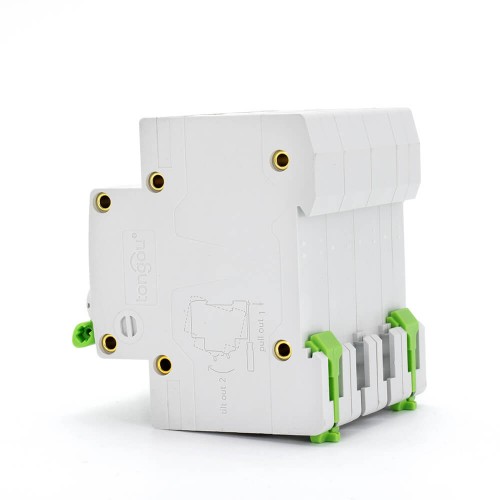 Le MCB AC 4P 63A est conçu avec une couverture transparente pour l’étiquette. Lorsqu’une surcharge se produit, afin de protéger le circuit, les poignées du MCB se déclenchent et restent en position centrale, ce qui peut permettre une solution rapide de la ligne en panne.