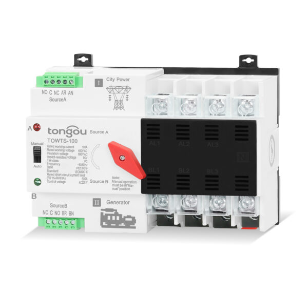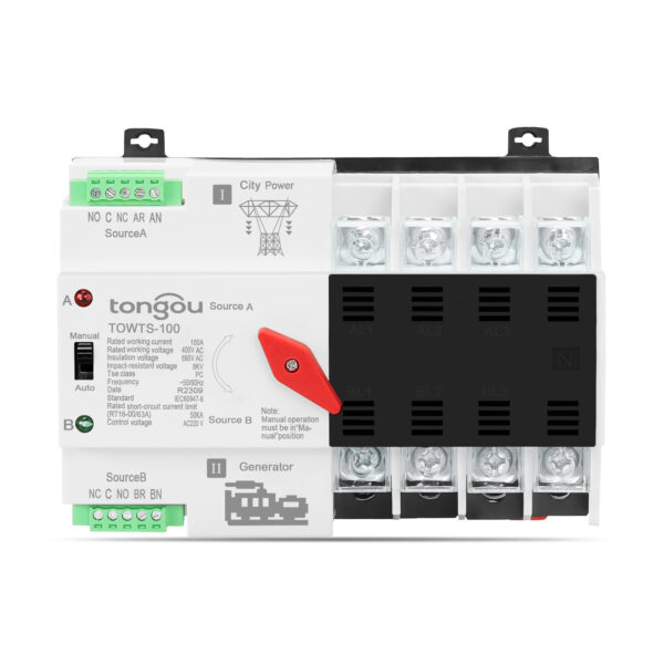 ATS Facile à câbler, faites-le vous-même :Installation sur rail standard de 35 mm qui peut être installée directement sur la boîte de distribution d’éclairage domestique. Lorsque l’alimentation électrique est entrée par L et N, veuillez visser pour percer la couche isolante des câbles d’alimentation.