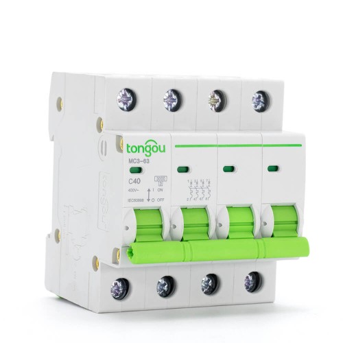 Le disjoncteur miniature MCB AC 40A 4P TOMC3 est adapté à la protection et au contrôle des charges à forte intensité, aux endroits à haute tension, à la protection contre les surcharges ou les courts-circuits des lignes de distribution, aux accessoires de protection par détection de courant résiduel, au contrôle manuel et à la segmentation, sans réduction de puissance.