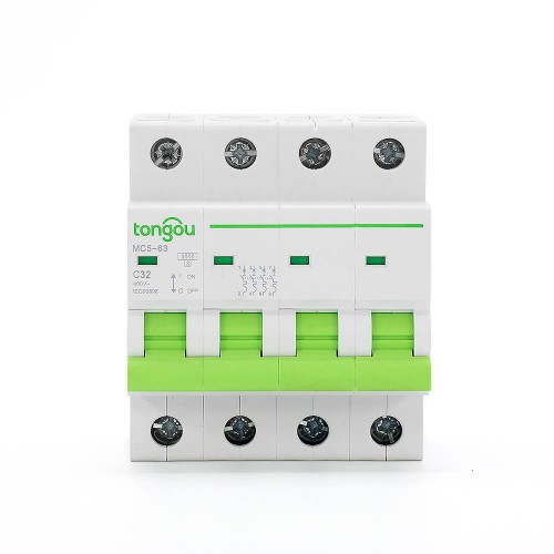 TOMC5-63 3KA 110V 220V Curve C 4P 32A Type C Mini Circuit Breaker (4P 32A type c MCB) is ideally suited to installations where space is restricted or few outgoing circuits are required.