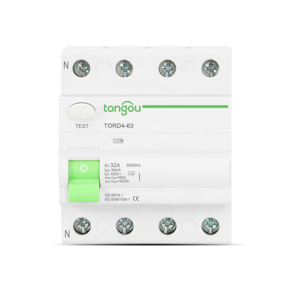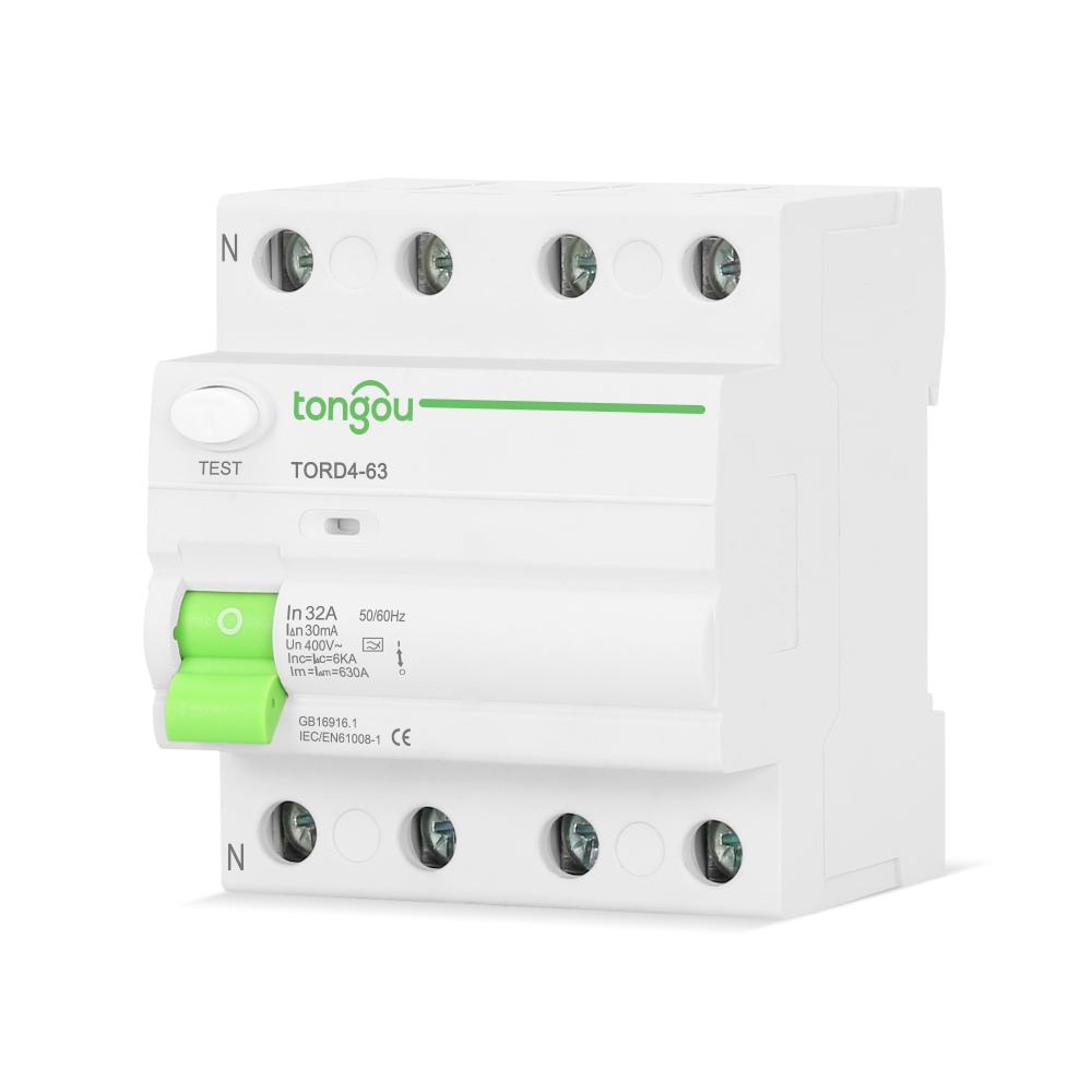 RCCB Disjoncteur de courant résiduel triphasé est applicable aux circuits électriques avec une tension nominale de 230/400V CA, une fréquence de 50/60Hz et un courant nominal jusqu’à 125Amp.