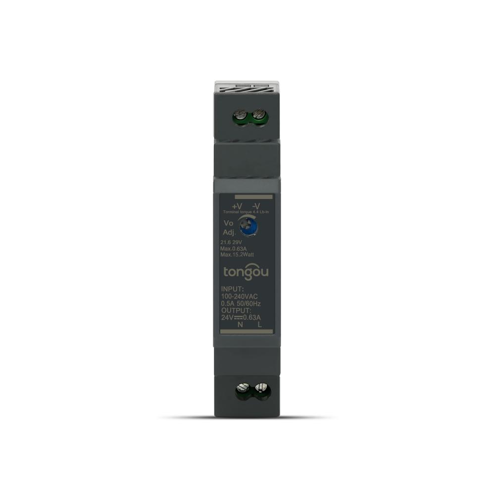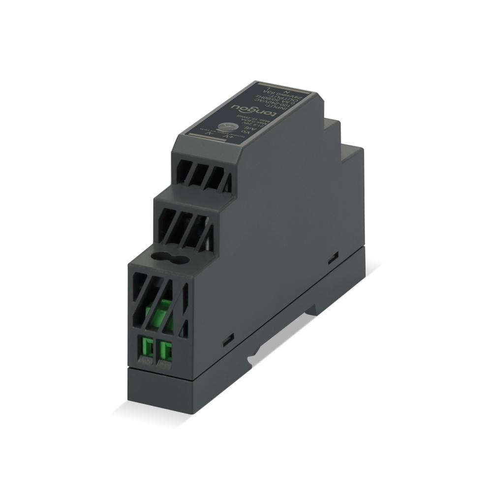 Cette source d’alimentation commutée sur rail est installée sur une rail standard et peut être utilisée dans une boîtier de distribution. Elle est souvent vue dans les systèmes de contrôle industriels et les systèmes automatisés.
