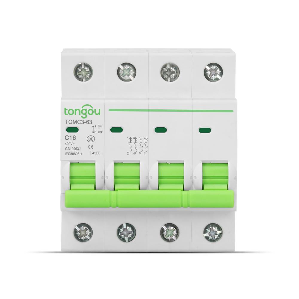 Le TOMC3-63 CA 4P 16A MCB de TONGOU offre une protection contre les surcharges