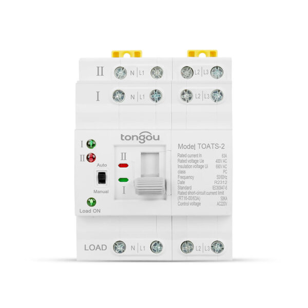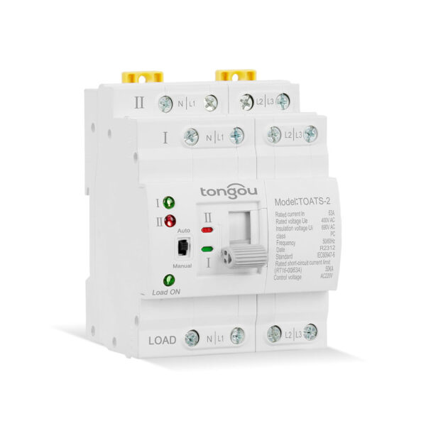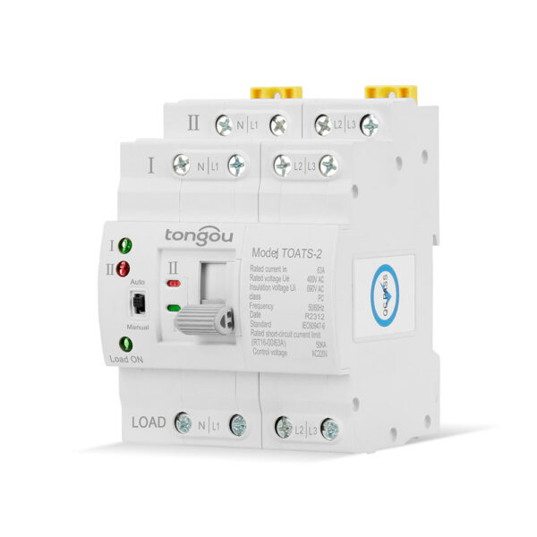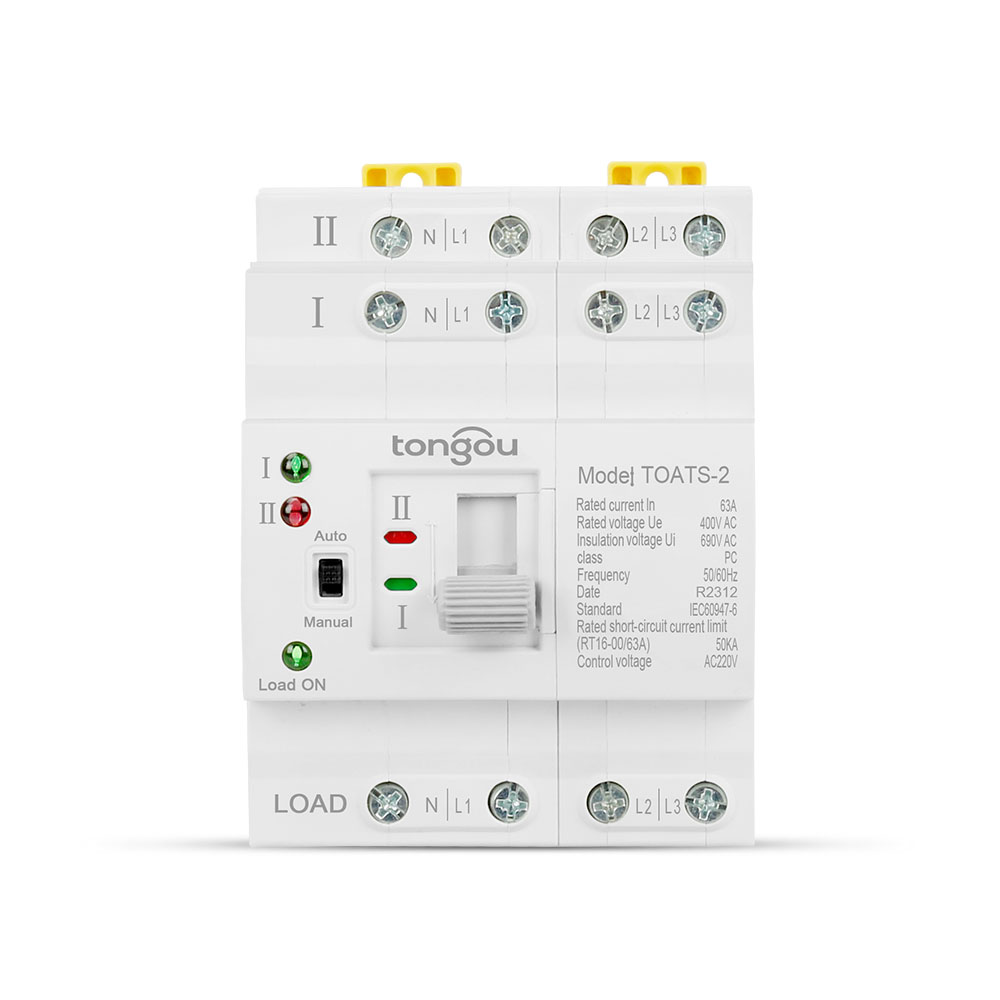 Le commutateur de transfert automatique TOATS pour rail DIN ATS est un commutateur de bascule de classe PC à changement peu fréquent, conçu pour deux postes (généralement utilisé pour A et en veille pour B), adapté aux systèmes CAC de 50 à 60 Hz et à une intensité nominale de 6 A à 63 A. La fonction principale du commutateur de transfert automatique est que lorsque l’alimentation principale (l’alimentation courante A échoue), le ATS basculera automatiquement vers l’alimentation de secours (l’alimentation de secours B) pour continuer à fonctionner (vitesse de bascule <50 millisecondes), ce qui peut résoudre efficacement les problèmes causés par les pannes d’électricité.