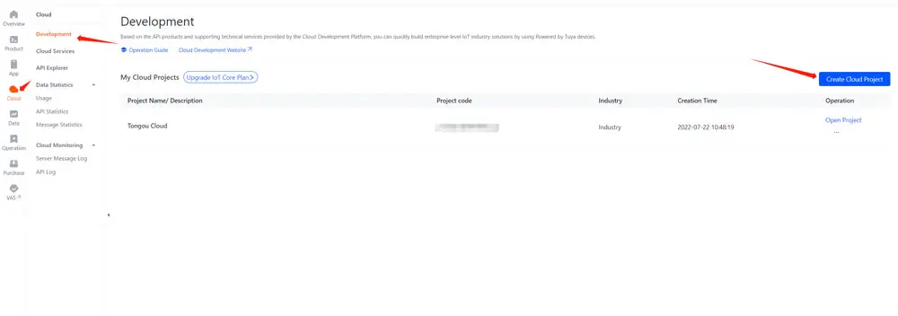 1. La creazione del progetto è completa. Per il processo di creazione del progetto, fare riferimento a Creazione di unProgetto Cloud Tuya.