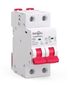 - Per circuiti DC da 3 KV, l’MCB DC 2P 32A TOMC7-63 può anche fornire protezione da sovracorrente e corto circuito.