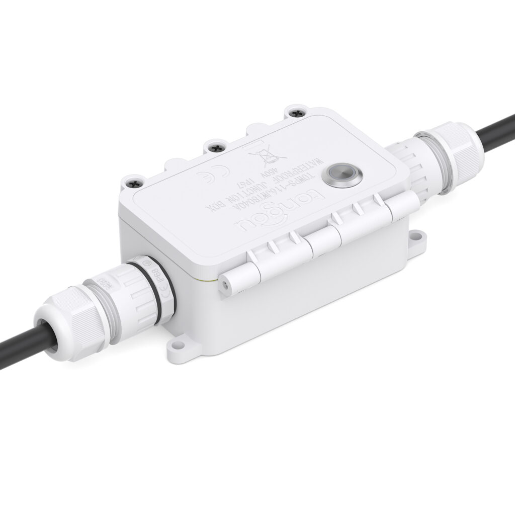 This industrial-grade protection is achieved through a robust polycarbonate housing, a continuous silicone gasket, and watertight cable glands, ensuring your connections stay safe and dry in the harshest conditions.