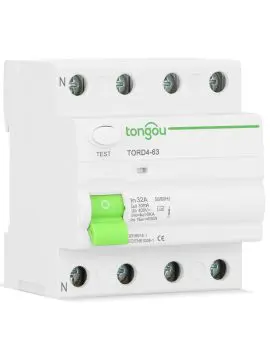 4P RCD RCCB TORD5-63 is suitable for circuits with rated voltage 230/400V AC, frequency 50/60Hz, and rated current below 125Amp.