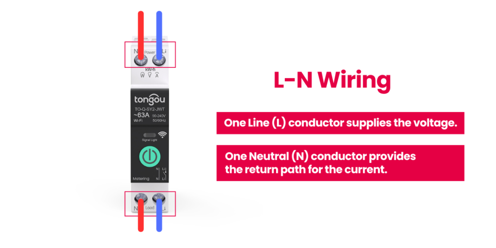 Проводка Line-Neutral (L-N) является наиболее распространенной конфигурацией для жилых и легких коммерческих приложений во всем мире. В однофазной системе L-N: